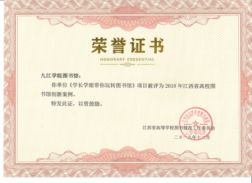 此外,在本次会议上,我馆还荣获江西省高校图工委授予的“2018年度江西省高校图书馆全民阅读先进单位”、2018年江西省高校“最美图书馆”等荣誉称号,由我馆推送的“学长学姐带你玩转图书馆”项目被评为2018年江西省高校图书馆创新案例。