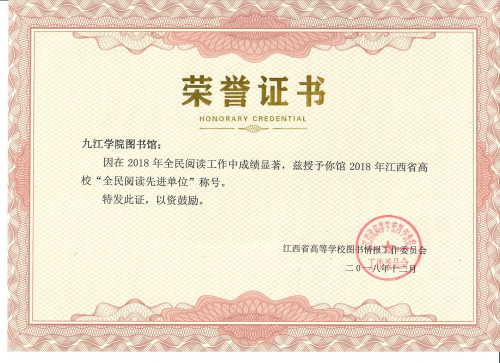 “品味书香•阅动赣鄱”共读活动优秀组织奖