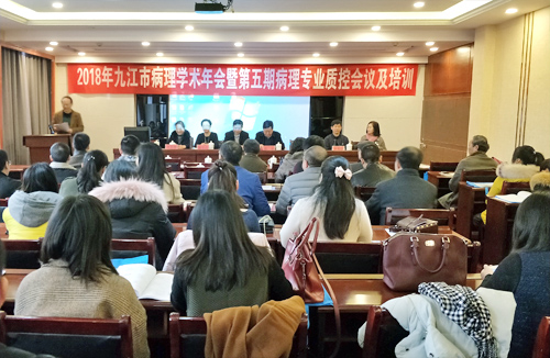 近日,九江市2018年病理学术年会暨第五期病理专业质控会议在 濂溪宾馆顺利召开。第八届福建省医学会病理学分会主任委员、解放军第900医院病理科主任医师余英豪,江西省病理学会主任委员梅金红,市卫计委总经济师徐端,临床医学院/附属医院党委书记张南华,基础医学院院长车向新等出席大会,来自全市各医院的70余名病理专业人员参加了会议。