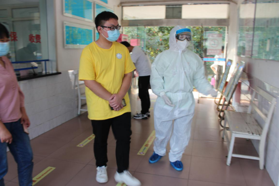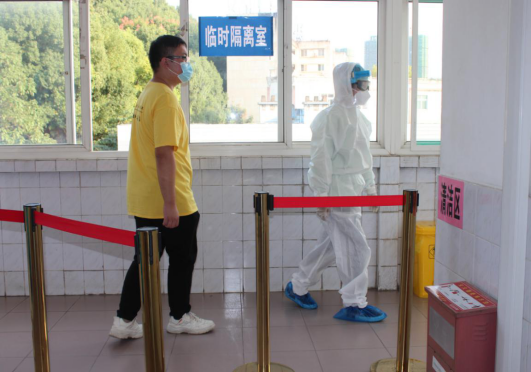 ↑由隔离场所护士将其引至3楼发热筛查室
