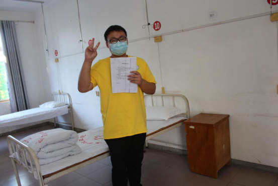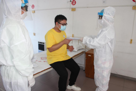 ↑核酸检测结果出来阴性,且体温正常后,校医院医护人员将解除隔离通知书送至学生手上,告知可以解除隔离并叮嘱注意事项。