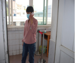 ↑竞知楼教室内,一名学生出现咳嗽,并自感发热,学生立即报告辅导员或者班主任。班主任告知学生带好口罩,并立即拨打校医院电话,告知有学生出现发热等可疑情况,校医院做好人员和隔离场所安排。