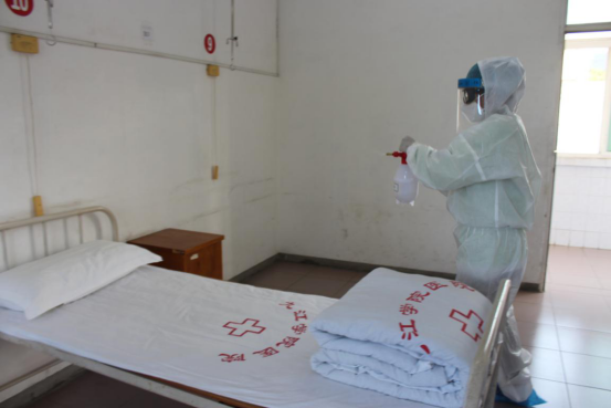 ↑医务人员对隔离场所进行全面消杀,演练结束。
