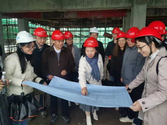 离开总指挥部后,教师们到紫薇园建工楼的施工现场进行了参观。