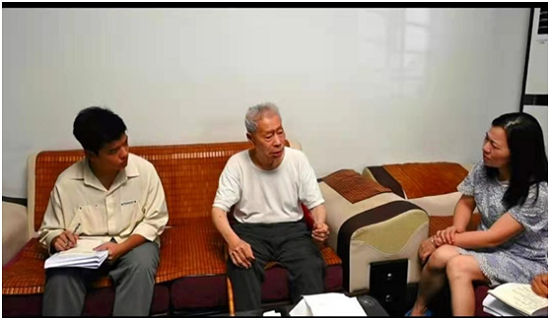 红色访谈小组第三组学生代表邹艺萍、余清强、张博天在马克思主义学院古维娟老师的带领下,来到九江市华宝家园小区探访了经历过两广战役、抗美援朝战争等多场战争,两次出席军区英模代表大会的老兵张大燕。