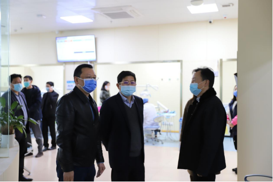 宁小球一行实地查看了附属口腔医院门诊大厅、缴费窗口、临床诊室、行政办公区等处,并与一线医务人员亲切握手表示慰问,详细询问临床工作开展情况。