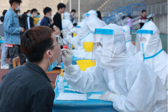 附属医院选派60名医护人员前往主校区进行全员核酸检测工作。
