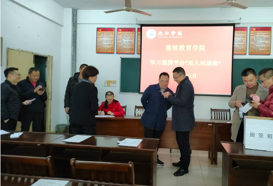 “100:60,A2号选手又赢一场。”“比赛很激烈,比分又平了!”11月24日下午,在学校立本楼二楼会议室,继续教育学院正进行着学习强国“双人对战”竞赛。经过一个多小时的紧张角逐,最终该院郑祚双、陈明、贾锋三位同志分获冠亚季军,卢小澍、仲伟佳、李勇、张良锋获优胜奖。“继续教育学院党委高度重视教职工的思想政治工作,积极利用‘学习强国’等平台开展多种形式的学习活动,努力打造学习型党委、学习型学院、学习型支部。”谈起活动初衷,继续教育学院党委书记王英姿表示。