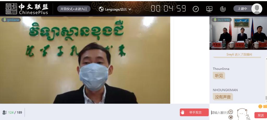 开营仪式后,文传学院何春根博士作了《走进九江》的精彩讲座。据了解,在接下来的9天里,23位老师与学员们将以“云上课”的方式,开启对瓷器、茶叶的探秘之旅,了解汉语诵读的技巧和美感,感受丰富多彩的中国语言与文化。