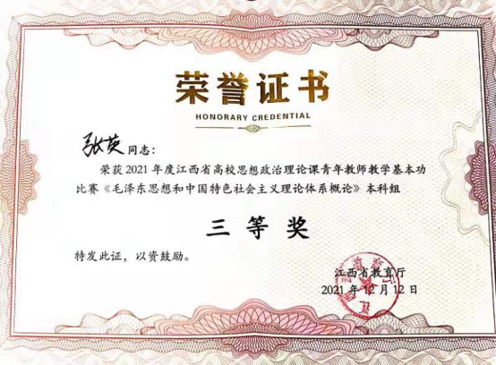 12月10日-12日,由省委教育工委、省教育厅主办的2021年度江西省高校思想政治理论课青年教师教学基本功和大中小学红色文化课程教学比赛分别在江西财经大学和南昌师范学院举行,来自全省83所高校的近400名教师参加了比赛。我校马克思主义学院参赛教师沉着应赛、发挥出色,取得较好成绩,分获二等奖1项,三等奖3项。
