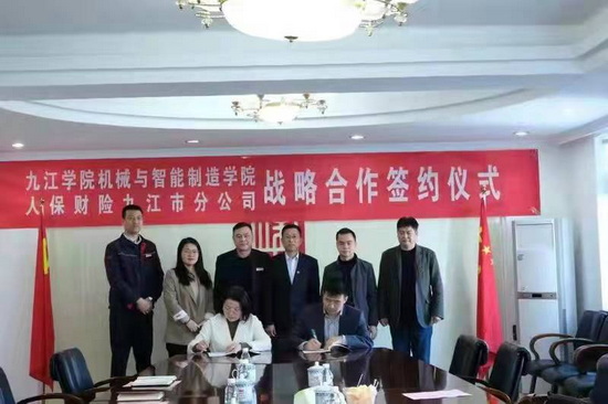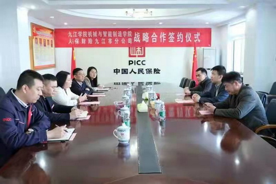 近日,我校机械与智能制造学院与中国人民财产保险股份有限公司九江分公司洽谈战略合作,并签订战略合作协议。据了解,双方将在机械类专业特别是车辆工程专业人才培养方案修订及课程建设、双师双能型师资队伍建设、学生实习实践基地建设、人才招聘与就业等方面开展全方位合作。
