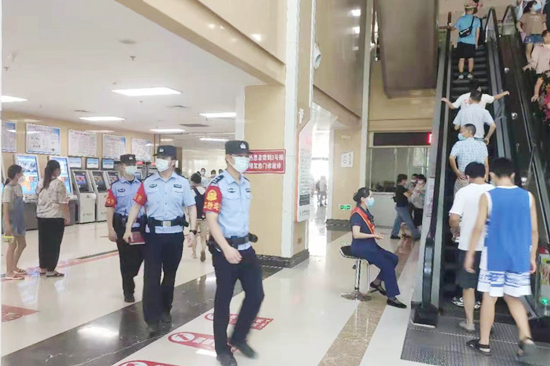 附属医院“爱警驿站”进行休整的时间,到门诊各楼层及各人员聚集处巡逻,每次巡逻至少半小时以上。巡逻期间他们还会向就医患者宣传防医托、反诈骗等自我保护常识,不仅有效维护了就医秩序,对潜在的犯罪分子和危险分子也起到了极大的震慑作用。附属医院保卫科与市公安局特巡警支队巡警一大队的通力合作,也显著提升了医院整体的风险预警能力。
