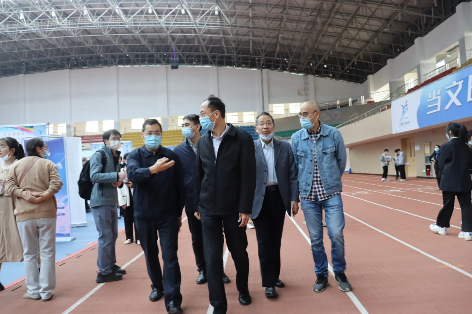 为拓宽毕业生就业渠道,服务我校毕业生高质量就业,10月29日上午,由学校主办,招生与就业处、经济学院与管理学院联合承办的2023届经济与管理类专业毕业生专场招聘会,在我校主校区北区体育训练中心顺利举行。副校长王万山、王殿元到现场指导,招生与就业处负责人,经济学院、管理学院党政负责人陪同。
