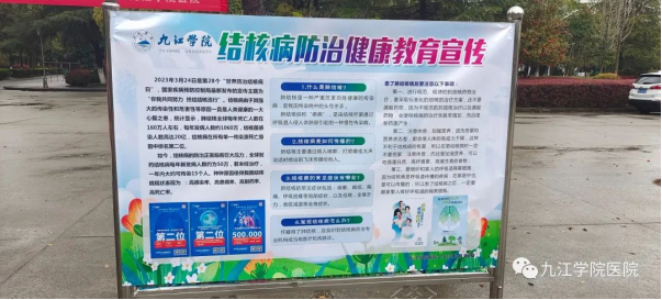 肺结核是长期严重危害人民健康的慢性疾病,在我国法定报告甲乙类传染疾病中发病和死亡数排在第2位。为进一步提高师生结核病防治知识知晓率,营造全校师生共同参与、群防群控的良好氛围,在第28个世界防治结核病日来临之际,校医院连续开展了系列主题为“你我共同努力,终结结核流行”的宣传活动。