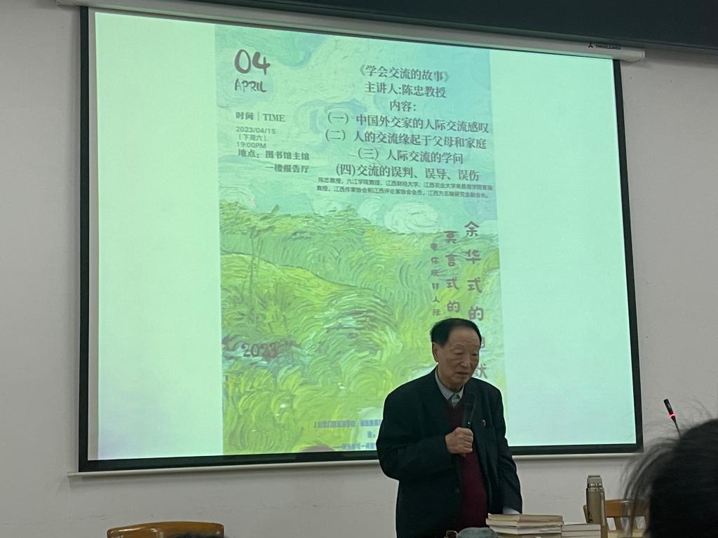 “与人交流一定要看对方的眼睛”,陈忠教授通过分享中国外交官交流的事例和感悟,向学生们阐述了交流礼仪,强调了人际交往中真诚的重要性。讲座最后,陈教授向学生们赠送书籍,殷切期望同学们做新时代有理想、有道德、有文化、有纪律的好青年。