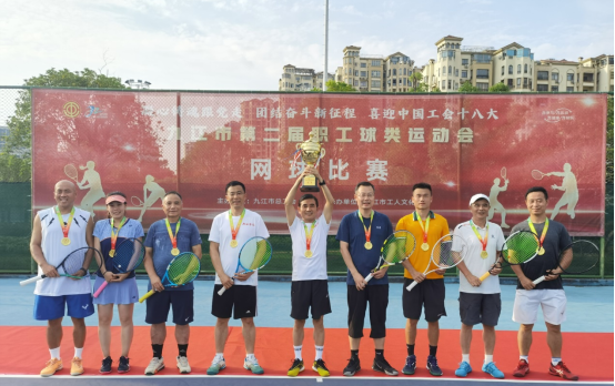 6月20日,由九江市总工会主办,九江市工人文化宫承办的九江市第二届职工球类运动会网球比赛在市体育中心网球场挥拍开赛。经过2天激烈比拼,