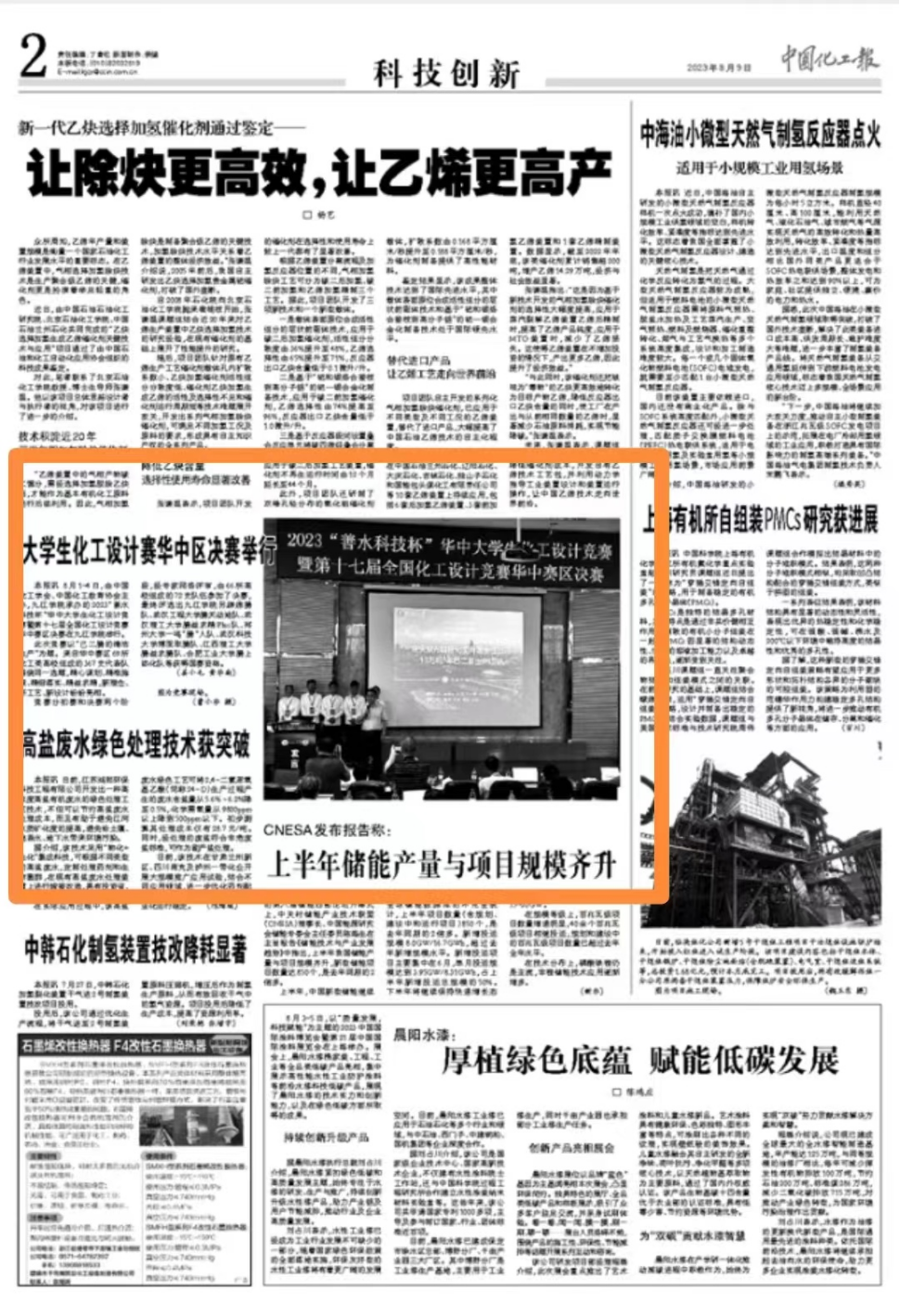 七、中国化工报(报纸),2023年8月5日 科技创新栏目