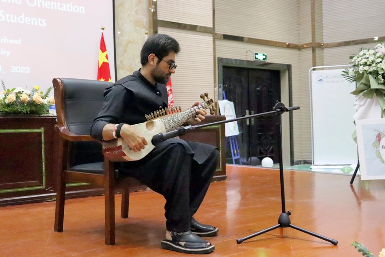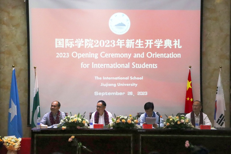2023年来华留学生开学典礼在香远楼三楼报告厅举行。副校长王万山出席开学典礼并致辞,勉励留学生们尽快融入