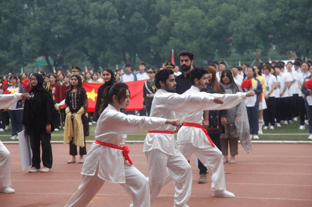 “我们都对中国功夫特别感兴趣,在体育学院李放老师的教导下,我们学习了,并在开幕式中展示了中国功夫。” 来自国际交流学院的巴基斯坦学生Munazzah malik 开心地说,“为此,我们在比赛前训练了一周时间,也非常喜欢中国文化,希望以后能有更多机会学习。”