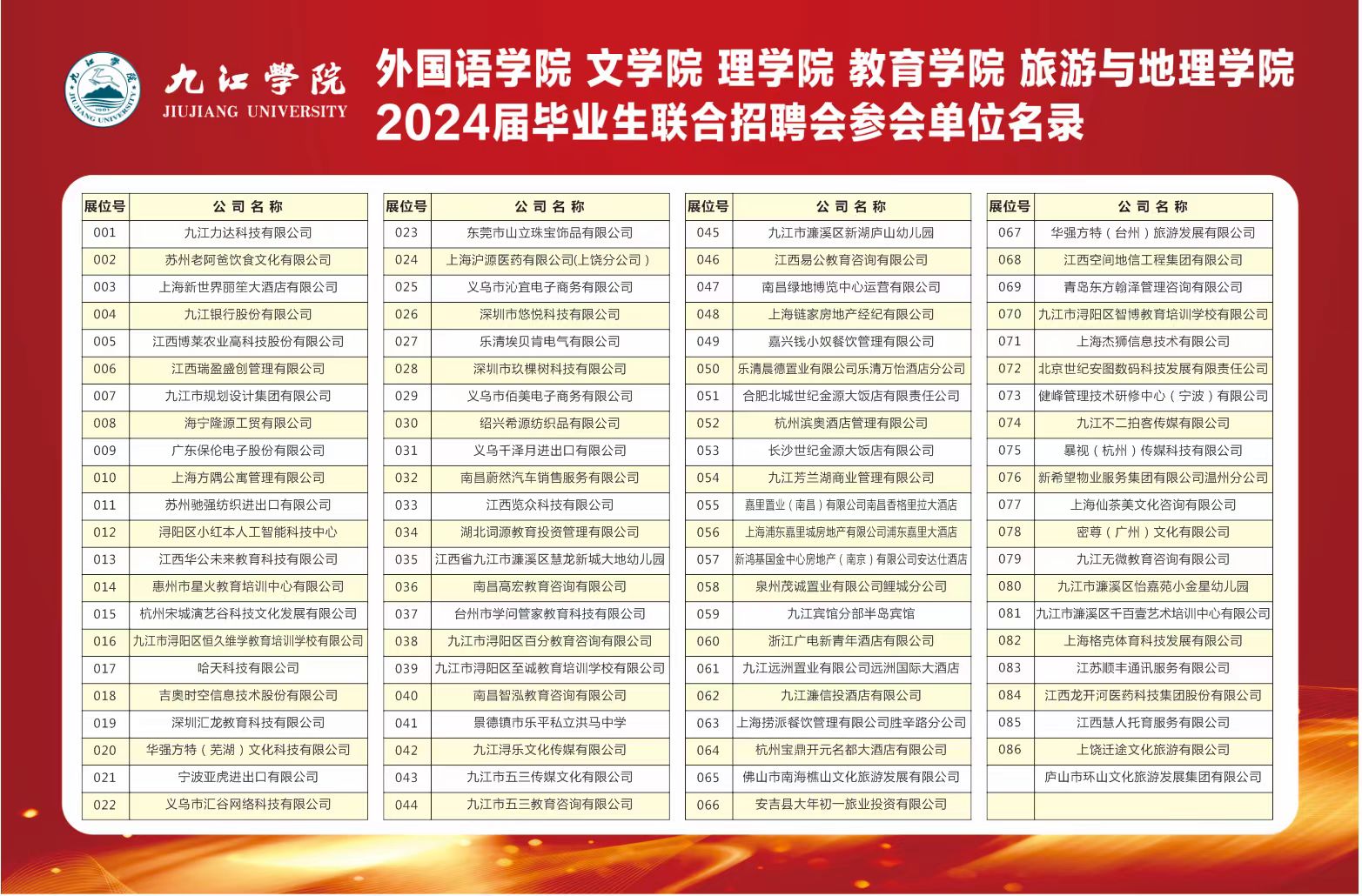 为人才寻求岗位,为企业寻找人才。五个学院在访企拓岗的基础上,根据毕业生专业、就业意愿、就业需求,精选了来自北京、上海、广东、浙江、江苏、湖北、安徽、福建、山东和江西等地的87家企事业单位参加招聘会,涵盖教育行业、外语外贸业、旅游酒店业、文化传媒业、信息技术业、金融行业等众多领域,提供就业岗位2000余个。