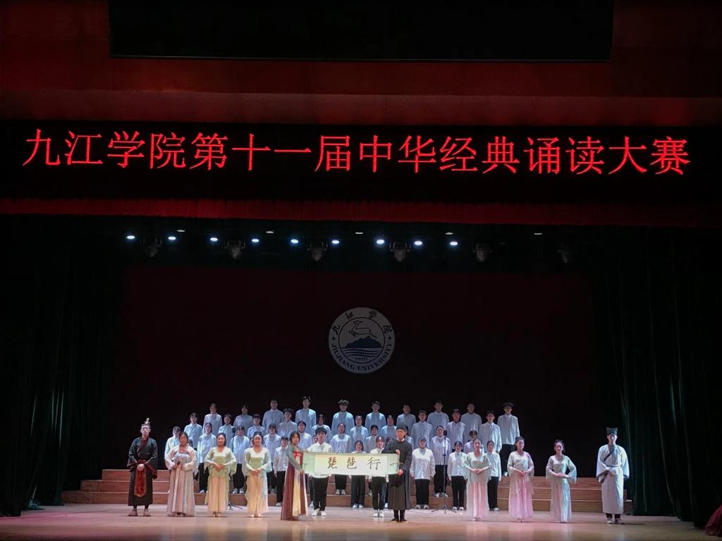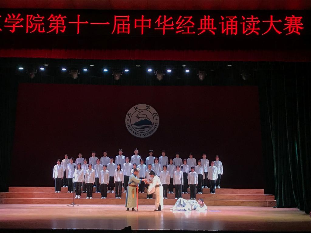 比赛中,11个进入决赛的二级学院代表队以朗诵、歌唱、舞蹈等表演形式,对话经典、品味经典、传承经典。