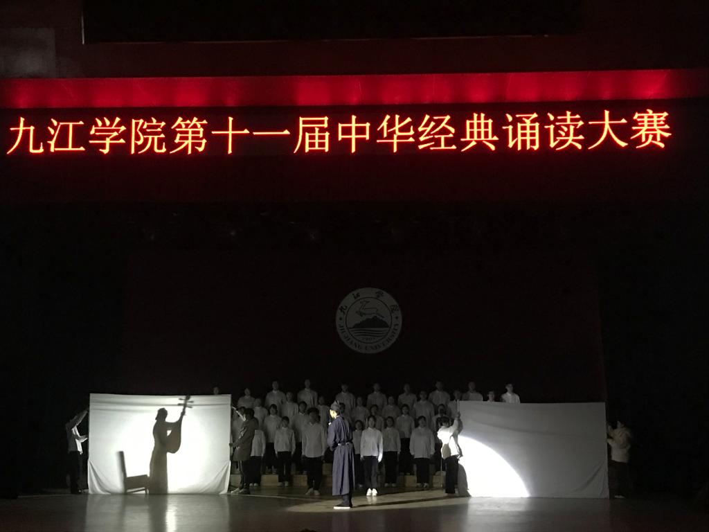 11月16日晚, 大礼堂灯火辉煌,以“传颂诗词经典 共建文明校园”为主题的第十一届中华经典诵读大赛正在举行。经过激烈角逐,外国语学院和医学院获得一等奖;经济学院、机械与智能制造学院、法学院获得二等奖;建筑工程与规划学院、化学化工学院、旅游与地理学院、文学院、资源环境学院、药学与生命科学学院获得三等奖。