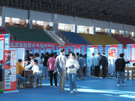 主办,招生与就业处、管理学院与经济学院联合承办的2024届毕业生联合专场招聘会在体育训练中心顺利举行。副校长王万山、王殿元到招聘会现场指导,经济学院、管理学院党政负责人陪同。