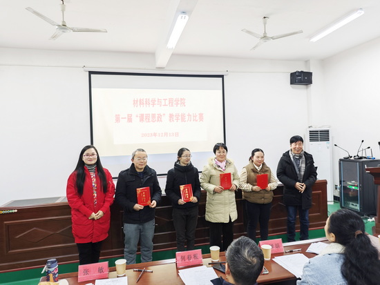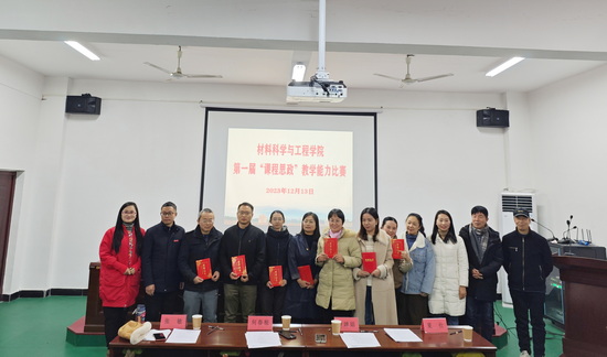 为推进课程思政建设,促进教师课程思政教学能力的提高,12月13日下午,材料科学与工程学院课程思政教学能力比赛举行。材料科学与工程学院全体教师参加了此次教学比赛。