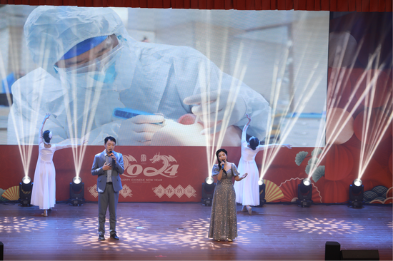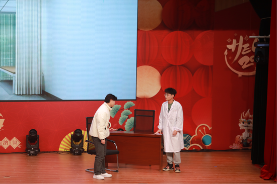 龙狮代表队带来的开场秀《鼓韵龙腾》中拉开序幕,节目形式丰富多彩,囊括了歌舞、乐队表演、舞台剧、三句半等,来自药学与生命科学学院、护理学院、医学院、体育学院的各专业学生及附属口腔医院职工代表,同医院医、技、药、护、行政各类职工都参与到了本次晚会表演中,为现场观众带来了酣畅淋漓的视觉盛宴,展现了团结向上的良好氛围和昂扬进取的精神风貌。在医院正式运营一周年之际,教职员工欢聚一堂,在欢声笑语中许下对新年的期许。