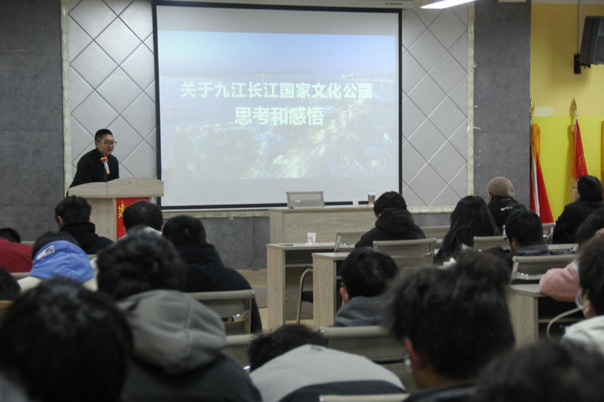 参观完九江长江国家文化公园后,大家来到学校望庐楼,进行了以“关于长江国家文化公园的思考和感悟”为主题的座谈交流。“一个好的设计,会顺应自然环境的可持续发展,会助力政府推进城市稳健发展,会让市民生活品质得以明显提升,会让投资者的财力得到合理回报,会让设计师实现个人理想价值。”通过生动的事例和一张张图片,齐云涛为师生们讲述了建设者们如何把梦想变为蓝图、把蓝图变成现实,让江流九派、诗意浔阳在新时代展现新的诗情画意,使长江岸线九江城区段成为水清岸绿、河畅景美、人水和谐的人民公园的过程。