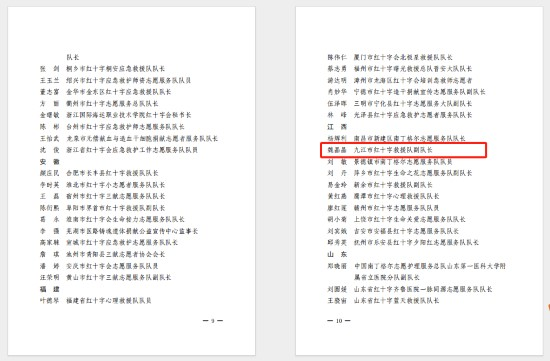 近年来, 依托优良教学资源和优秀专技人才,积极践行“人道、博爱、奉献”的红十字精神,积极参与红十字志愿服务活动,多次承担全市各行业人员应急救护培训教育活动,为进一步提高全社会应急救护技能水平发挥了积极作用,受到广泛好评。魏晶晶老师是 学生处的一名有17年教龄的管理干部,参加志愿服务时间长达11年。身为一名红十字志愿者,她认真履职尽责,不仅自己积极参与各项公益活动,还带动在校大学生参与,积极弘扬“人道、博爱、奉献”的红十字精神,为九江创建全国文明城市贡献红十字力量。她连续多年义务参加长江防溺水值守活动,积极引导组织退役大学生参与红十字救援工作,多次组织“红十字‘救’在身边”为主题的宣传活动,向学生介绍急救知识和技能的重要性。她志愿参加市红十字救援队并担任副队长,先后获得学校优秀共产党员、优秀教育工作者称号,连续三年获评九江市红十字会“优秀志愿者”、九江市红十字救援队优秀志愿者。