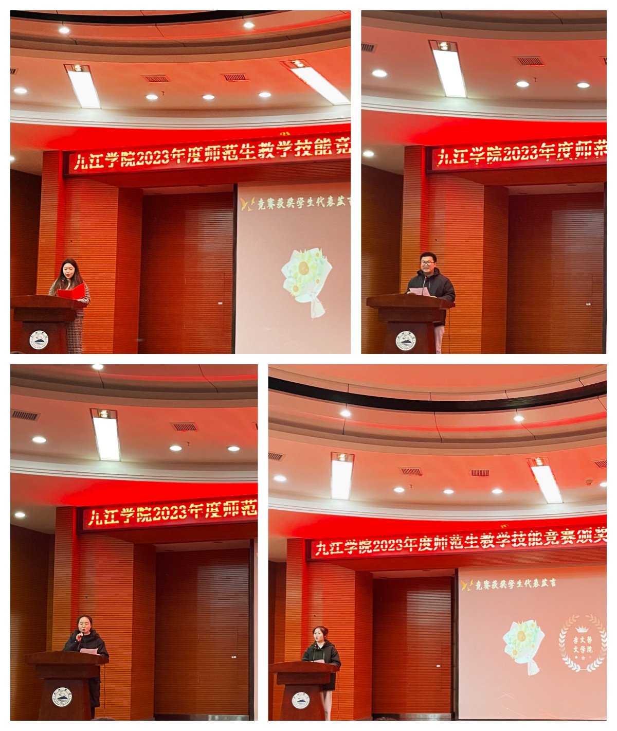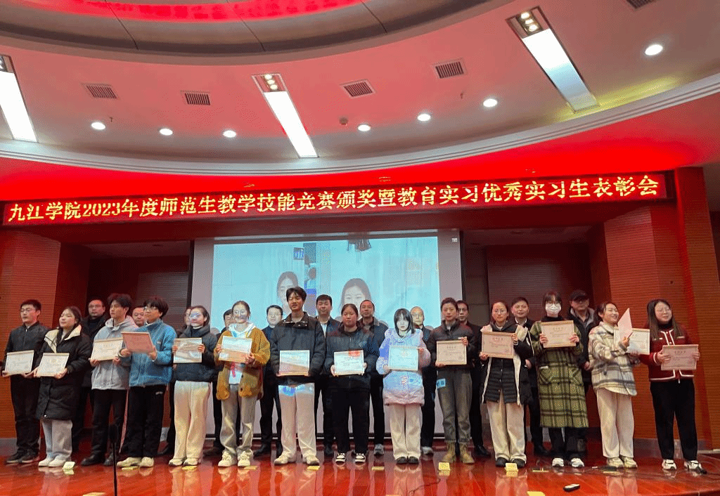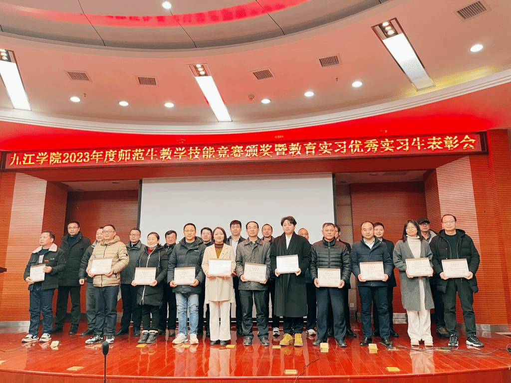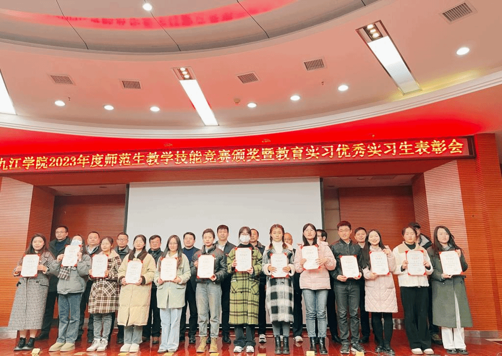 此次活动表彰了赵妍等13名 2023年度师范生教学技能竞赛一等奖获得者、李欣怡等16名二等奖获得者、杨惠霖等14名三等奖获得者以及熊修春等13名优秀指导教师;同时,还表彰了在2023年教育实习中荣获“优秀实习生”称号的65名同学。