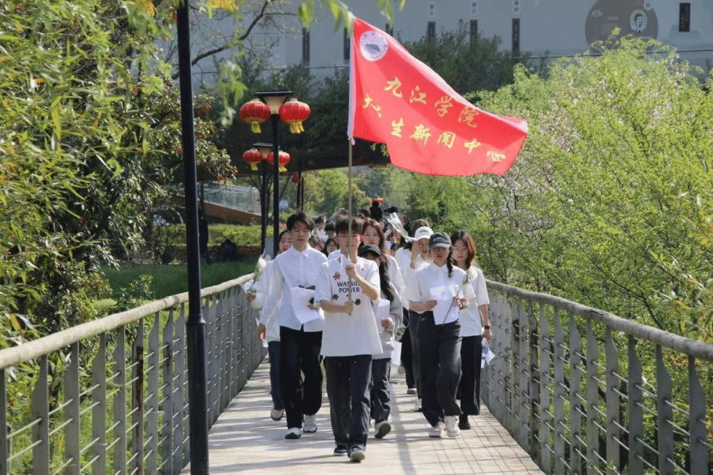 大学生新闻中心组织40余名学生徒步走进九江市濂溪公园缅怀文化先贤,传承廉洁文化。