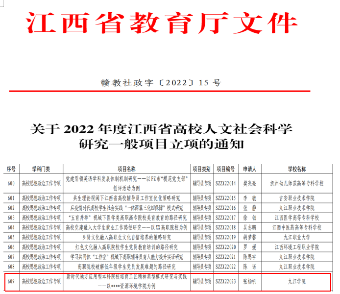 学院围绕“建设区域性高水平大学”学校办学目标,加强内涵建设,加快推进学科交叉融合,聚焦大江大湖产业生态化与环境健康领域,全力推进资源与环境学科点建设工作,创新工作举措,优化资源整合,高质量召开学科建设研讨会,全面优化提升建设指标。资源与环境学科新增为校优势学科,环境工程专业获批江西省一流本科专业,环境生态工程专业获校应用型转型试点专业,资源环境科学专业全面向“双碳”和生态环境大数据方向转型,《环境规划与管理》获批省一流课程、省一流课程思政示范课、江西省线上线下混合式一流课程,特色本土课程《鄱阳湖与生态文明》教材正式获批立项建设。
