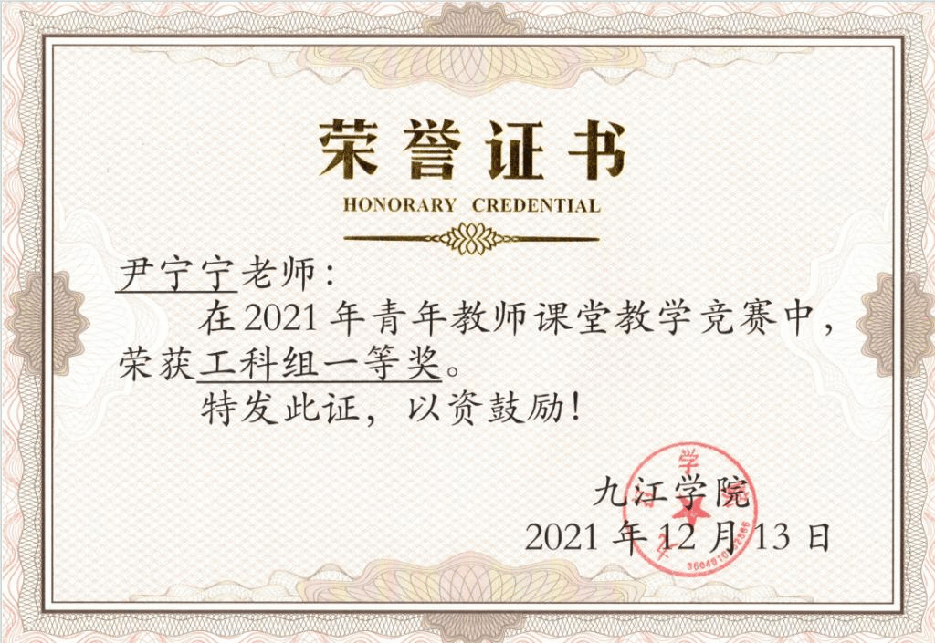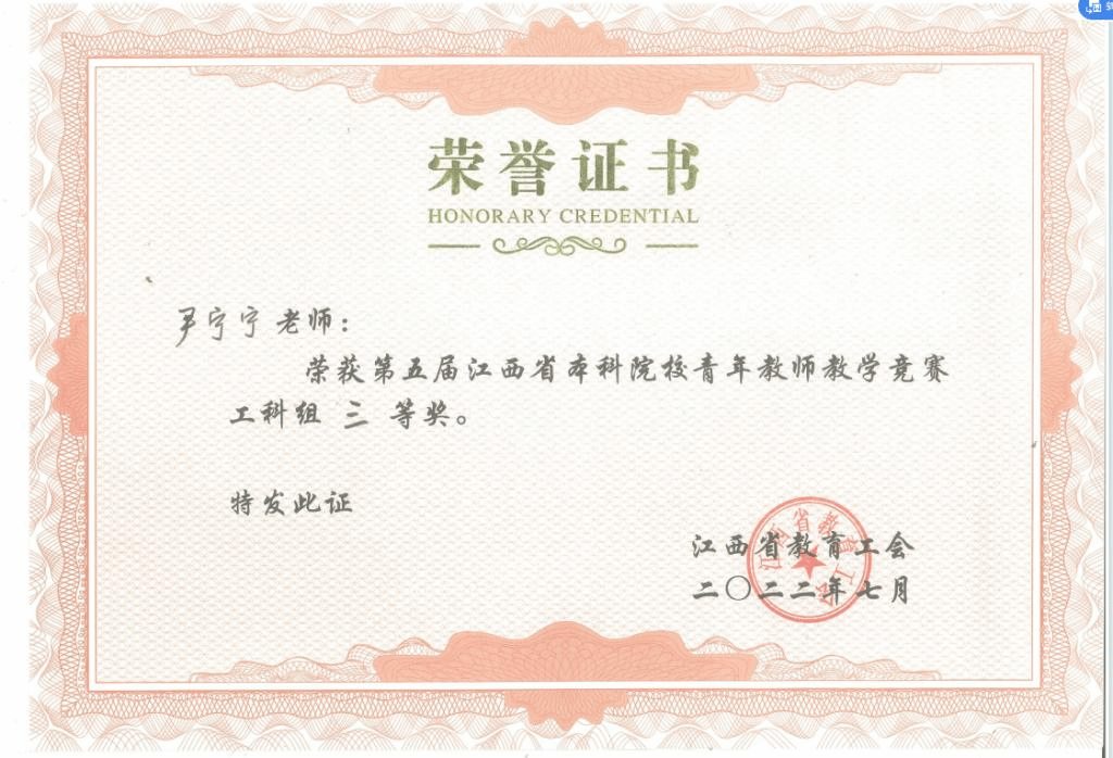 青年教师教学比赛一等奖1项,三等奖2项,获省高校教师教学创新大赛三等奖1项。