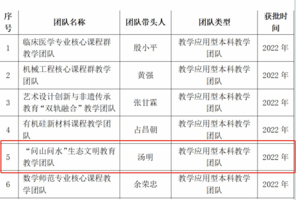 学院依托教育部、省社科基金,省教改课题等开展生态文明教育主题研究、课程思政教学研究,成立生态文明教育虚拟教研室、鄱阳湖生态文明研究院,引导师生扎根赣鄱大地,取得明显成效。“问山问水”生态文明教育教学团队获批为省级高水平本科教学团队,阶段性成果获江西省教学成果一等奖1项,二等奖1项;《以学堂制特色化探索生态文明教育“