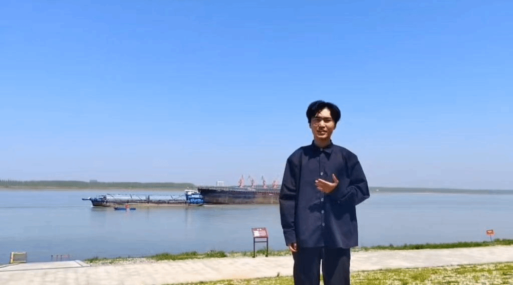 学生在浔阳江头录制“江右文学 声声不息”诵读视频