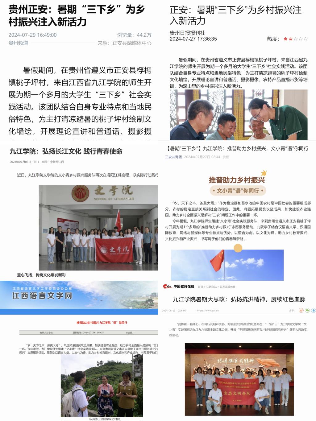 2024年的暑假, 文小青探寻红色印记,寻访文化圣地,于江西省九江市修水县、彭泽县、武宁县和贵州省遵义市正安县开展推普助力乡村振兴志愿服务,将青春书写在广阔的赣黔大地上。
