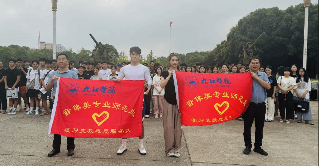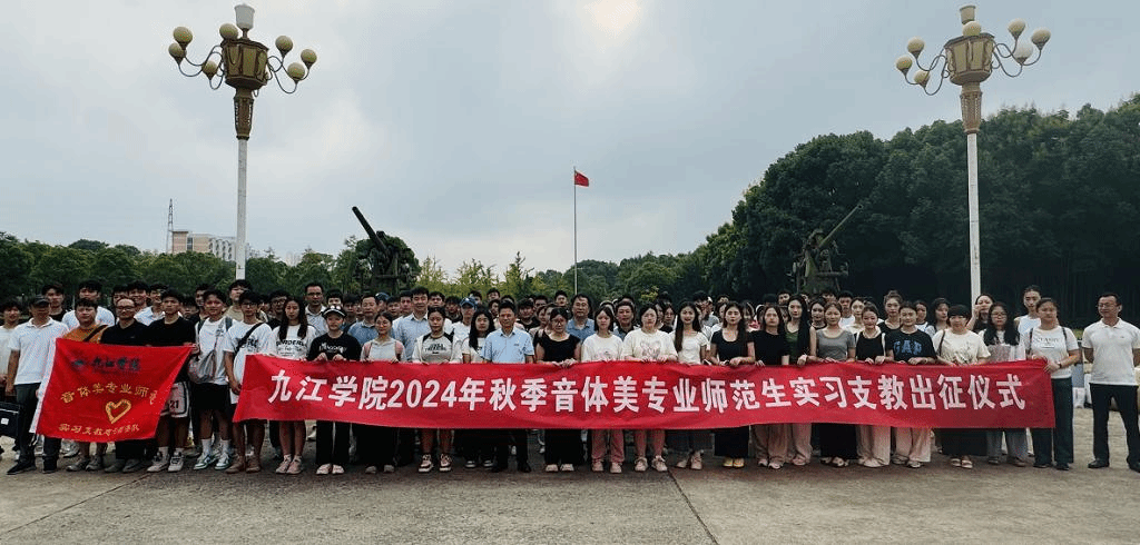 举行了2024年秋季音体美专业师范生实习支教出征仪式,此次音体美支教活动共计安排109名音体美专业师范生,前往九江市8个县(区)37所乡村小学开展为期一个学期的实习支教活动。副校长李松志出席并致词。教务处、艺术学院、体育学院相关负责人和参加实习支教的带队教师及同学参加了仪式。