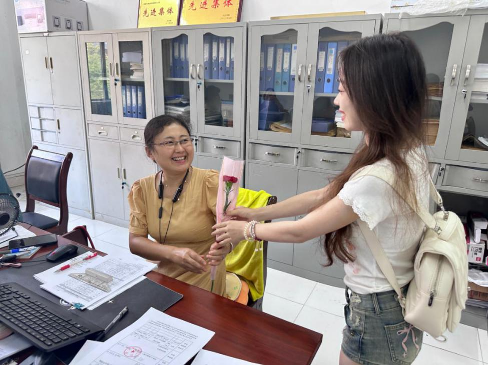 鲜花献师长,共谱师生情。9月10日晨光初照,校园内洋溢着节日的温馨与喜悦。来自校院两级的学生代表们手持鲜花,遍布校园各处,从校门口到教学楼,从办公室到林荫道,他们以最朴素而真挚的方式,将一束束精心挑选的鲜花献给敬爱的老师们,每一朵花都承载着学生对老师深深的感激与祝福。一句句“老师,节日快乐!”、“谢谢您,老师,您辛苦了!”给老师们带去浓浓的仪式感,也让同学们更加深刻地体会到老师们“赠人玫瑰,手留余香”的深刻内涵。