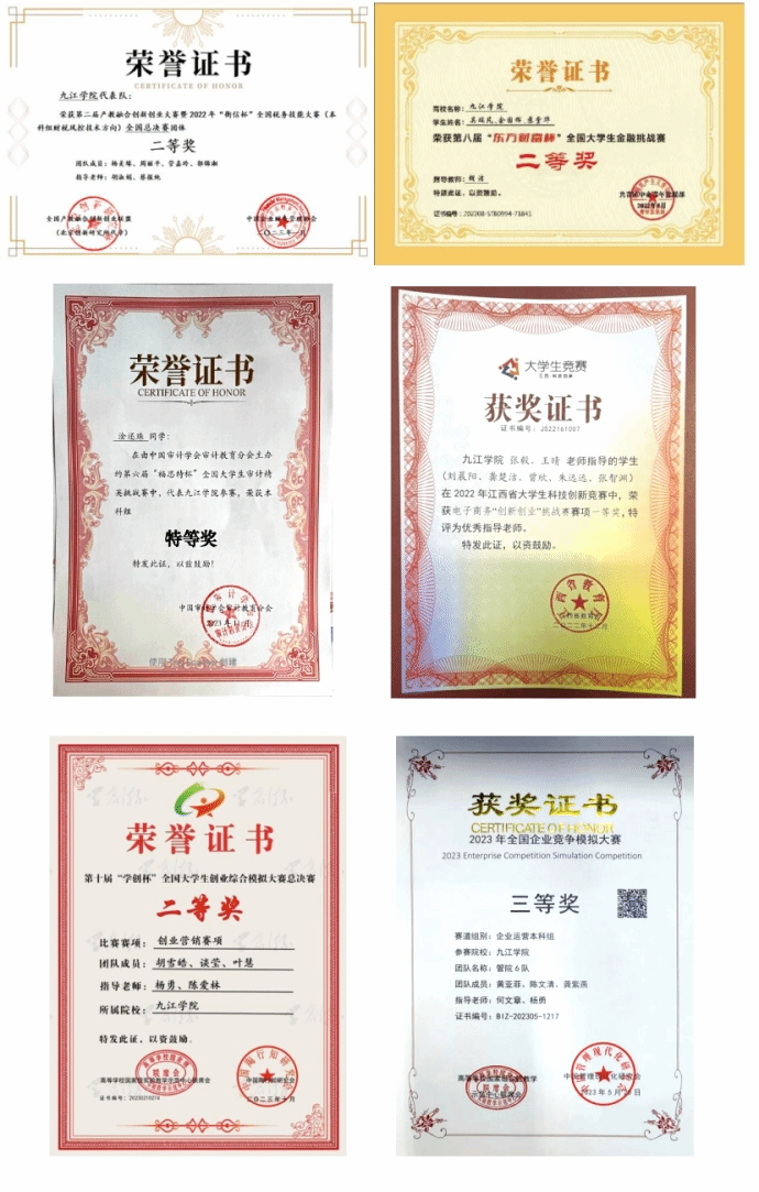 坚持“以学生为本”的教育理念,构建“三全育人”工作格局,落实立德树人根本任务,大力推进优良院风、教风、学风建设,聚焦“应用型”转型,持续推进人才培养质量。坚持“以赛促改、以赛促教、以赛促学、以赛促建”原则,以学科竞赛促进学生专业素养提升。近5年我院学科竞赛获国家级奖项108项(金奖24项,银奖42项,铜奖42项),省级奖项153项(金奖34项,银奖40项,铜奖79项)。其中互联网+创新创业大赛获省级银奖2项、铜奖3项,“挑战杯”大学生创业计划竞赛获省级铜奖5项;全国大学生电子商务“创新、创意及创业”大赛获国家级金奖1项,省级金奖1项、银奖2项、铜奖3项。在校学生以第一作者发表论文28篇;主持国家级、省能大学生创新创业训练项目15项。