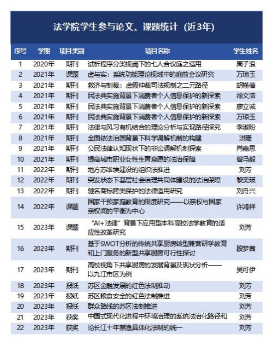 近三年法学院学生参与论文课题和荣誉