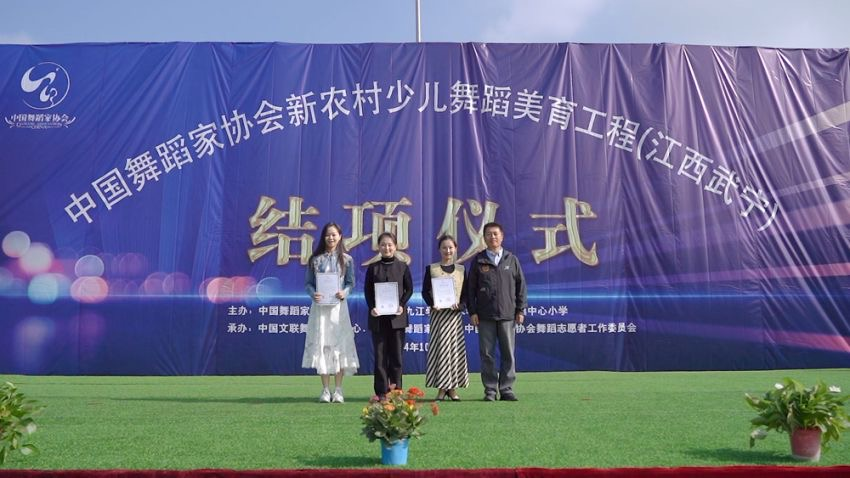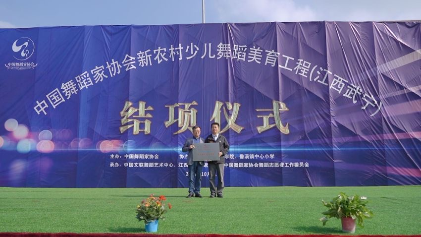 10月31日上午,“中国舞蹈家协会新农村少儿舞蹈美育工程”(江西武宁)结项活动在武宁县鲁溪镇中心小学举行。在结项活动中,中国舞蹈家协会授予 艺术学院“中国舞协新农村少儿舞蹈美育工程志愿服务实践单位”,授予张栗娜、王荣、万悦芬中国舞蹈家协会“优秀志愿者”证书。