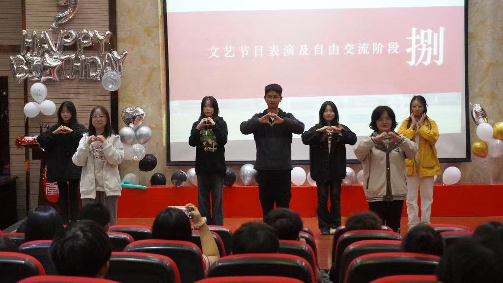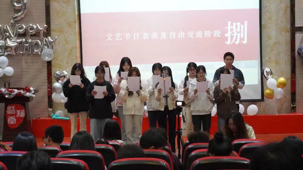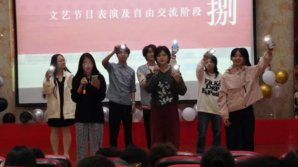 互动环节温馨热烈,趣味小游戏、载歌载舞、齐声合唱和诗歌朗诵让现场气氛高涨。在手电筒营造的温暖光晕中,大家畅谈心里话,表达对老师与彼此的感谢与祝福,进一步增强了小记者们的归属感与荣誉感。