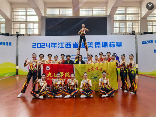 由江西省体操协会主办的2024年江西省健美操锦标赛于12月22日在江西师范大学园满落幕。 的参赛选手们以精湛的技艺、优美的动作和饱满的热情,最终夺得了两金一银一铜的好成绩,充分展示了我校体育学院在健美操教学和训练方面的成果。