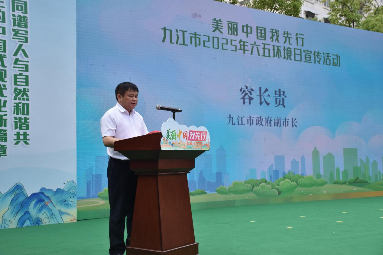 容长贵在讲话中指出,过去一年九江市深入践行“绿水青山就是金山银山”理念,生态环境质量显著提升,天更蓝、水更清、山更绿,生态文明理念深入人心。他强调,这些成绩得益于全市市民的共同努力,尤其是青年群体的积极参与。他向全社会发出三点倡议:一是争做生态文明理念的“代言人”,发挥创意优势,用新媒体传播绿色声音;二是争做绿色转型的“实干家”,从小事做起,积极践行环保理念,为美丽九江贡献智慧和力量;三是勇当美丽九江的“守望者”,用脚步丈量152公里长江岸线,将生态课堂开到田间地头,守护九江生态底色。