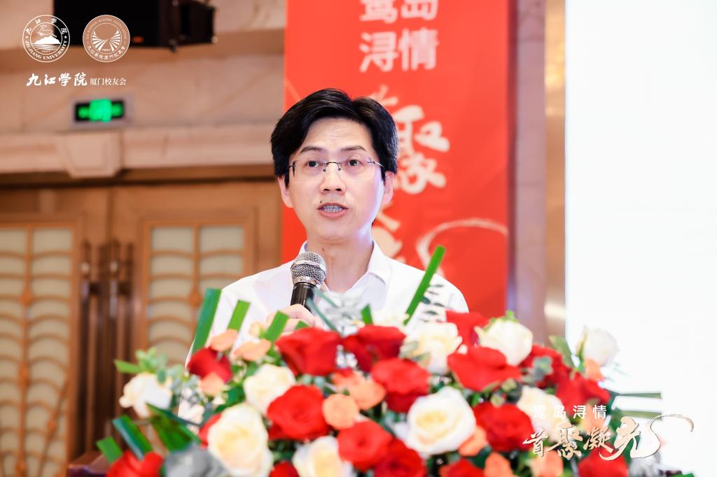 全体师生对活动的成功举办表示热烈祝贺,向参加大会的厦门校友会代表以及来自全国各地的校友会代表表示欢迎,向新当选的厦门校友会首任会长、执行会长、监事长、常务副会长、秘书长、副会长和理事等表示祝贺,对精心筹备会议的厦门校友会秘书处及所有工作人员表示感谢。他向在场校友们介绍了学校近两年的工作成效和未来战略部署。查振华表示,学校于近期接受了教育部本科教育教学审核评估,并刚刚顺利完成了首次研究生招生工作。一封封浸润着奋斗汗水的录取通知书,既是对考生寒窗苦读的深情回响,更是学校跨越式发展的重要见证。学校正全力以赴抓好审核评估“后半篇文章”,努力提升教育教学质量和办学水平,朝着早日实现更名九江大学、突破博士学位授权单位、建成全国一流应用型大学的目标砥砺前行。