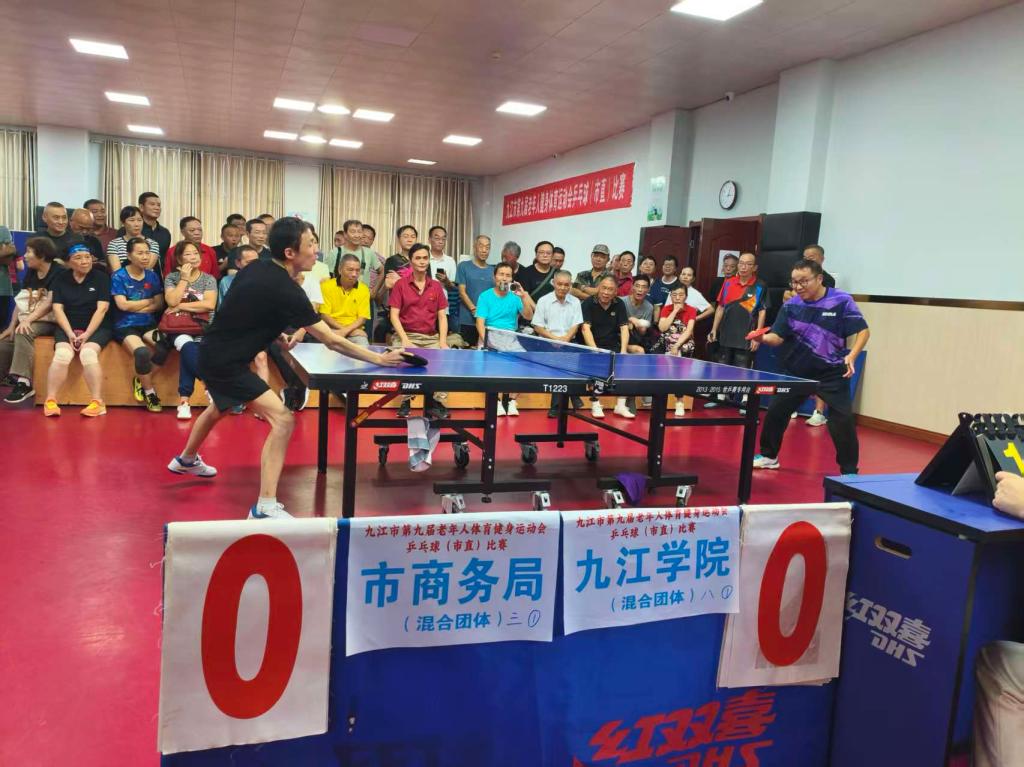 在九江市第九届老年人体育健身运动会乒乓球(市直)比赛中,由