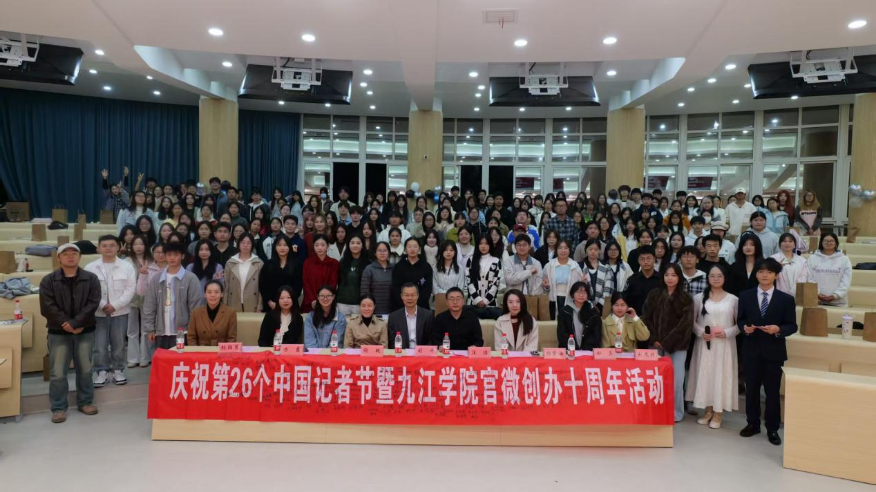 官方微信创办十周年纪念活动。校党委委员、宣传部部长刘平出席活动并为记者节采风大赛获奖学生颁奖。大学生新闻中心指导老师、新闻中心全体成员、校团委新媒体发展中心、各二级学院新媒体宣传骨干,以及江西职业技术大学、九江职业大学、江西财经职业学院等兄弟院校师生代表,共计200余人齐聚一堂,共襄盛会。