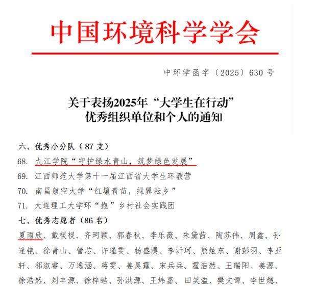 近日,中国环境科学学会发布了2025年“大学生在行动”环保科普志愿活动评选结果,